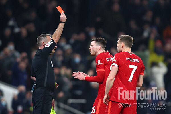 리버풀의 승리로 끝나는 것처럼 보였다. 특히 알리송과 로버트슨을 평점 10점을 부여해도 아깝지 않을 활약이었다. 그러나 축구는 실수의 스포츠다. 두 선수 모두 치명적인 실수를 범했다. 인간 같지 않았던 알리송이 인간미 넘치는 실수를 했고, 후반 28분 손흥민이 집념을 발휘하며 동점골을 넣었다. 이후 후반 30분에는 로버트슨이 에메르송에게 거친 파울을 범하면서 VAR 끝에 퇴장을 당했고, 수적 열세에 놓였다.